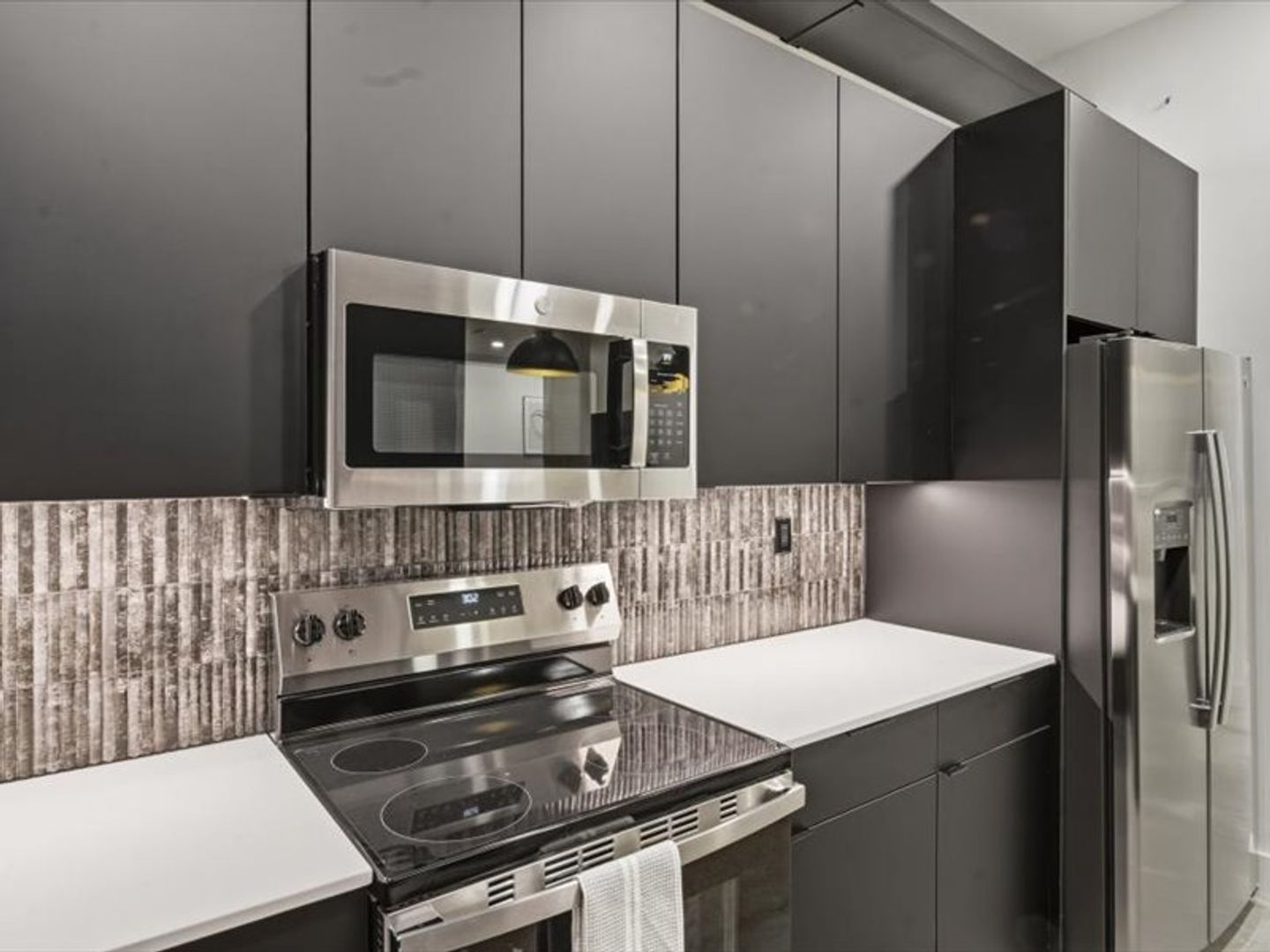 • Quartz countertops with designer backsplash