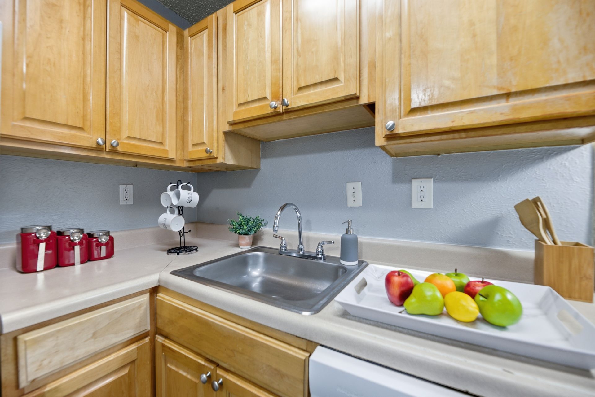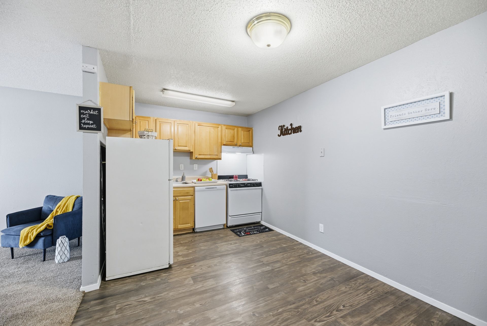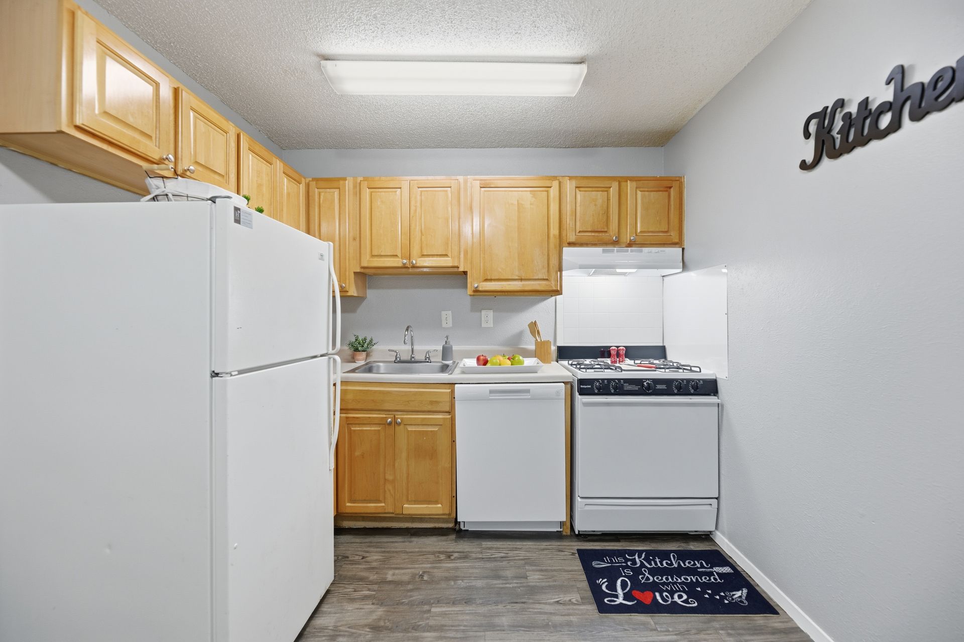• Fully equipped kitchen with dishwasher, refrigerator, gas stove, and garbage disposal